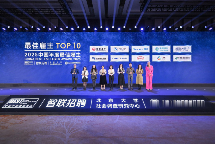 “中国年度最佳雇主”评选活动始于2005年,由智联招聘发起,北京大学社会调查研究中心和北京大学国家发展研究院联合举办,现已成为中国人力资本领域的权威风向标。招商银行连续15年入围中国年度最佳雇主10强,13年获评最佳雇主前3强,2024~2025年度蝉联榜首。作为中国雇主品牌标杆企业,招商银行雇主品牌不仅获得员工的认同、人才的青睐,也收获了社会各界的长期关注与高度认可。