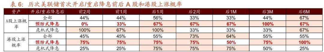 招商证券分析认为,从历史经验看,在美联储首次启动或重启预防式降息后,A股与港股后市上涨概率显著上升。具体来看,港股在降息后一至两周内上涨概率达75%;降息后三个月,A股及港股上涨概率分别达到100%和75%;半年后,港股上涨概率更是高达100%。